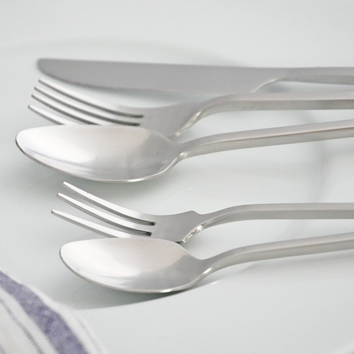 カトラリーも同じシリーズで揃えておくと、食器棚にすっきり収納できますよ。