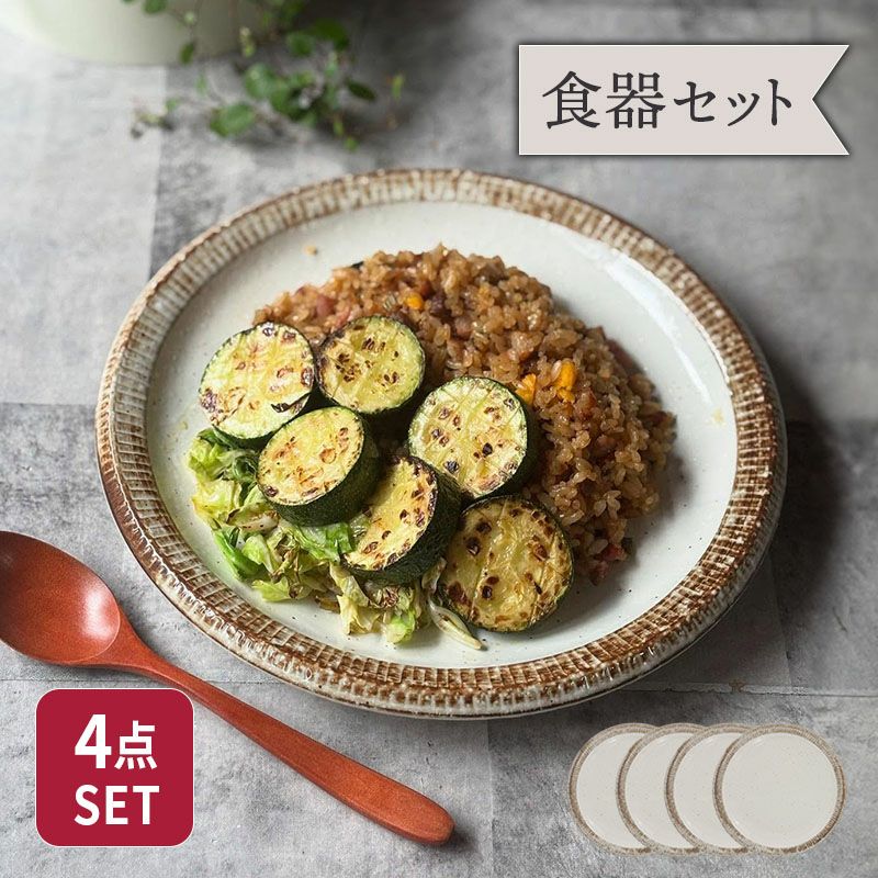 人気のカフェ食器がセットに。 (4枚セット)渕錆粉引 ディナープレート