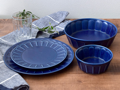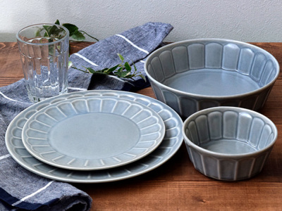 大皿、中皿、中鉢、小鉢の食器セット。色違いや、欲しいサイズのみ買い足しできるような、シンプルなセット内容です。