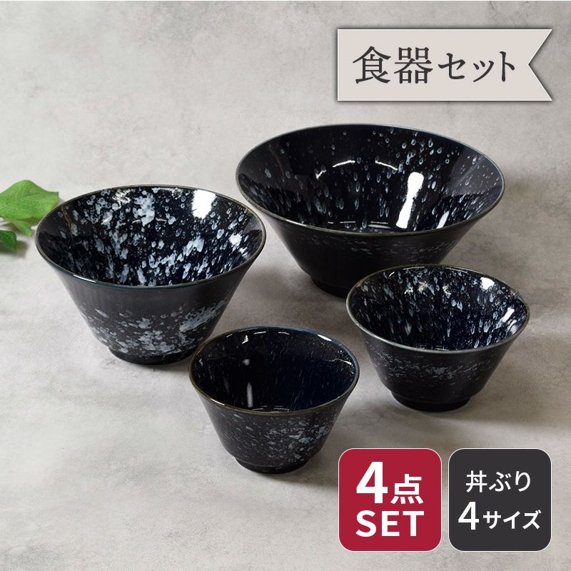 シックなカラーで趣のある美しい和食器セット どんぶり4点セット 食器セット 細雪 ささめゆきシリーズ ネイビー 割引セット 送料無料