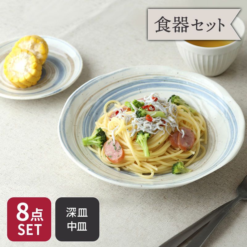 カレー・パスタ皿 & 中皿 4人用 プレート 8枚セット 2サイズ×各4枚 うず粉引 和食器 割引セット