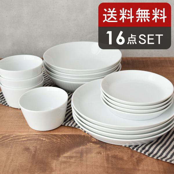 シンプルでスタイリッシュな白磁の食器、「クレール」シリーズのお得な16点セット。