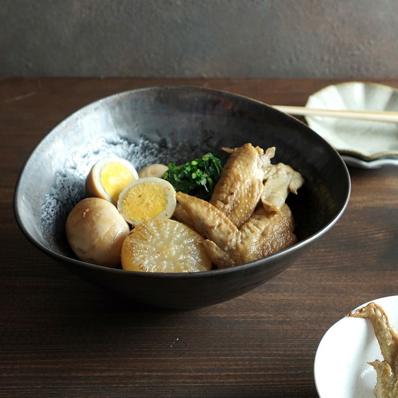 鉄結晶はモダンな印象で和食をはじめ、洋食、アジアン料理などいろいろな料理に対応してくれます。 煮物鉢、サラダボウル、副菜の盛鉢にぴったり。楕円型がテーブルのアクセントにもなってくれるので、おしゃれなおもてなし食器として活躍してくれますよ。