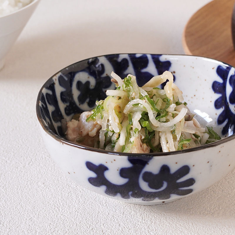 食卓のアクセントになる、白と青のコントラストが美しい台形小鉢。 台形小鉢 10.5cm