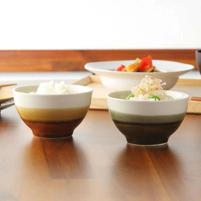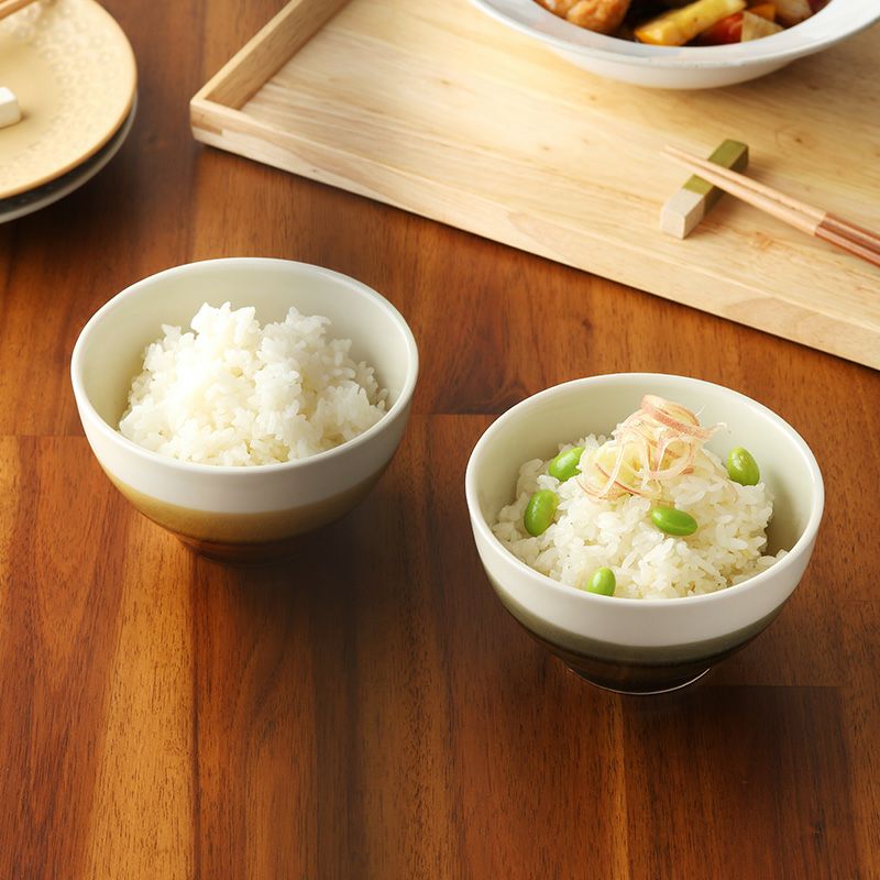 お茶碗を思い浮かべた時に、白いご飯を盛りつけたものをイメージしますが、もちろん用途は白飯だけではありません。 炊き込みご飯や混ぜご飯、栗ご飯、サツマイモご飯、豆ごはん(グリンピースご飯)から、今では炊飯器でケチャップライスやチキンライスを作ったり、パエリアやカオマンガイを作る時代になりました。ご家庭ではこれをお茶碗に盛りつける事もあるかと思います。 また、とろろご飯や卵かけご飯、お茶漬けなど、「ご飯(お米)」のメニューだけでも、意外と種類が多いことがわかります。 白いご飯以外にも、食卓に並ぶ機会が多いご飯茶碗は、おかずや料理メニューが多種多様化してきた現代であっても、欠かせない食器のひとつとなっています。