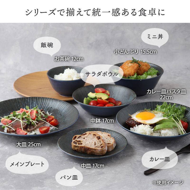 また、ご飯を盛りつける以外にも、使い勝手が良いのが、汁椀のように深型の飯椀です。 主食がご飯でなく、パンの日であったとしても、スープボウルとしてお使いいただけます。 パンにミネストローネやポトフ、シチューなど、洋食メニューにも対応。また、こういった形の茶碗を複数個揃えておけば、ひとつはご飯、もう一つはみそ汁、豚汁や餃子スープなどの具がたっぷりのメニューを盛りつけて食卓に並べてもOK。コーディネートもまとまりが出て、まるでカフェのような雰囲気に。 その他、ちょっとしたおかずやサラダを盛りつけて、小鉢のような使い方をしても良いですね。