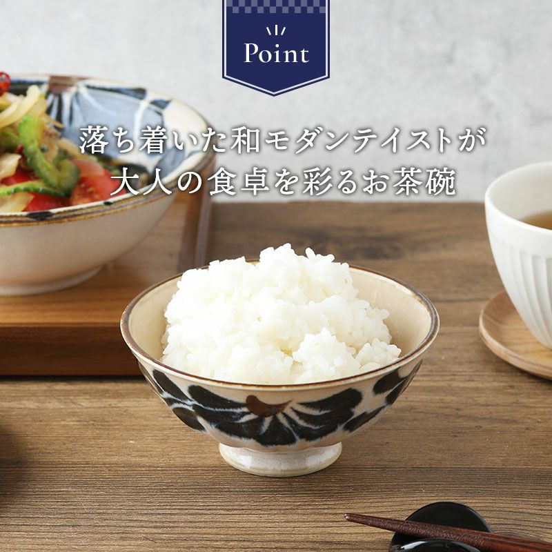 いわゆるベーシックな和のお茶碗をいくつか揃えておけば、来客時などにも重宝します。 炊いただけの白いご飯も、お茶碗の絵柄で雰囲気がガラッと変わります。少し高そうに見える絵柄のお茶碗を出せば、その他のおかずも手が込んでいるメニューのように見えてきますよ。