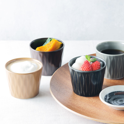 素地をねじって作られたような形が特徴的な湯呑み。 和食器ながら、モダンなデザインと大人な雰囲気のカラーバリエーションで、古臭くない、おしゃれな湯のみに仕上がっています。