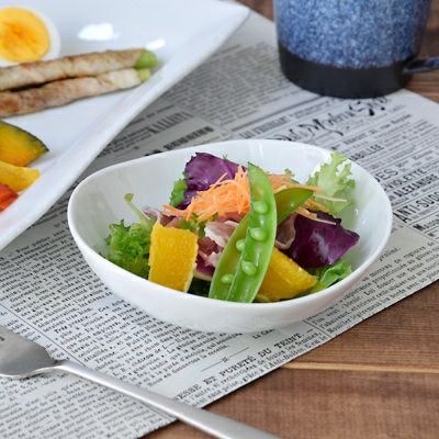 生活の中に自然と馴染む、当店オリジナルブランド「STUDIO BASIC(スタジオベーシック)」の中鉢。雲のような優しい形状が、少し個性的でおしゃれ。 美しい白い食器は、料理や食材を引き立てます。