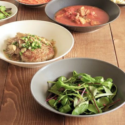 こだわりのフォルムで大人な雰囲気のシリーズ。煮物やきんぴらなど常備菜を盛り付けても洒落た一皿にしてくれます。サラダやマリネ、パスタなど洋食メニューはお任せ。手抜き料理も特別感がUPして食卓の上での存在感は抜群です。