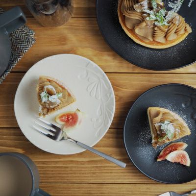 縁のリムの部分に施された「しのぎ」模様がお花のようで、料理を盛り付けた際に額縁のような役割で料理を引き立たせてくれます。こちらは真っ白ではなく柔らかいマットなアイボリー。組み合わせる食器によってカジュアルにもシックにも変身します。ボウルとプレートで全部で6種類のバリエーションがあります。