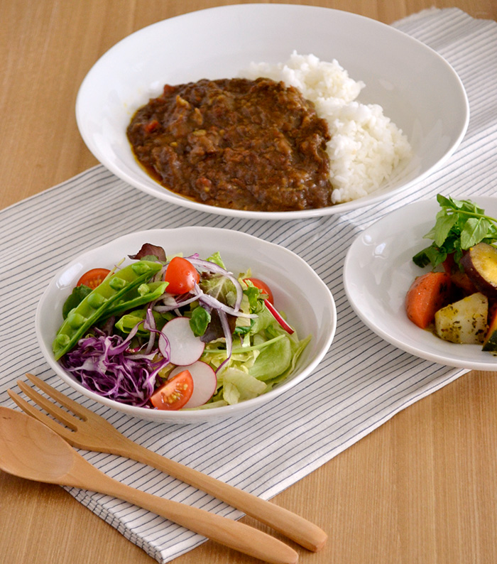 シンプルな白い食器は、和食・洋食問わず使えて持っていると重宝します。今日はどのお皿にしようかな、と迷ったら