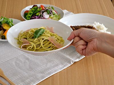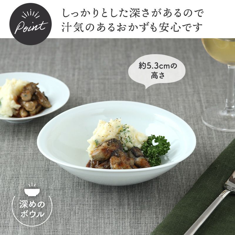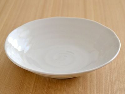 約20cmの深めのお皿はパスタやカレー、サラダやカフェ風どんぶりなどマルチに使える形。 何と言っても最大のポイントはその軽さ。約330gという軽さで、ストレス無く扱うことが出来ます。ろくろ目のようなうず模様がシンプルな雰囲気に表情をプラスし、和風洋風問わず使えるお皿です。