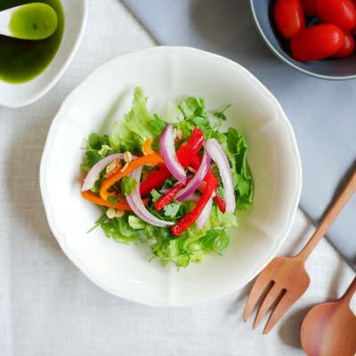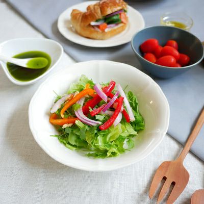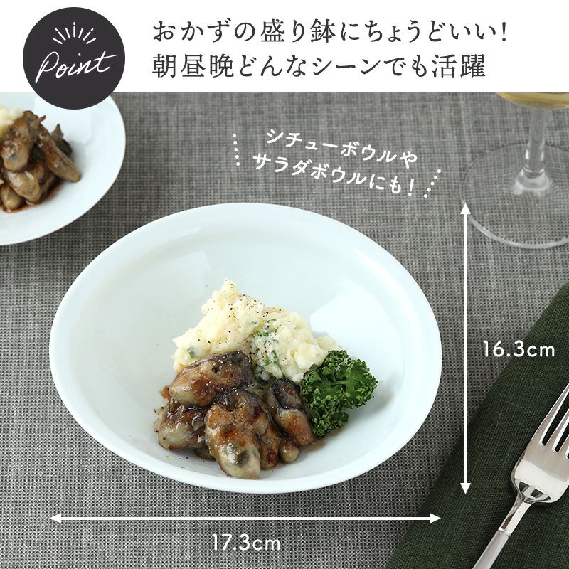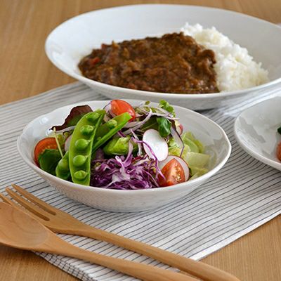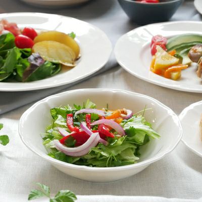 シンプルでスタイリッシュな白磁の食器、「クレール」シリーズ。約16.8cmは、サラダボウル、煮物鉢、副菜鉢に便利な中鉢サイズ。 サラダが1~2人分ほど入るので、ディナーのおかずにオススメ。