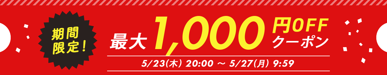 最大1000円OFFのクーポン配布! お得なこの機会をお見逃しなく!