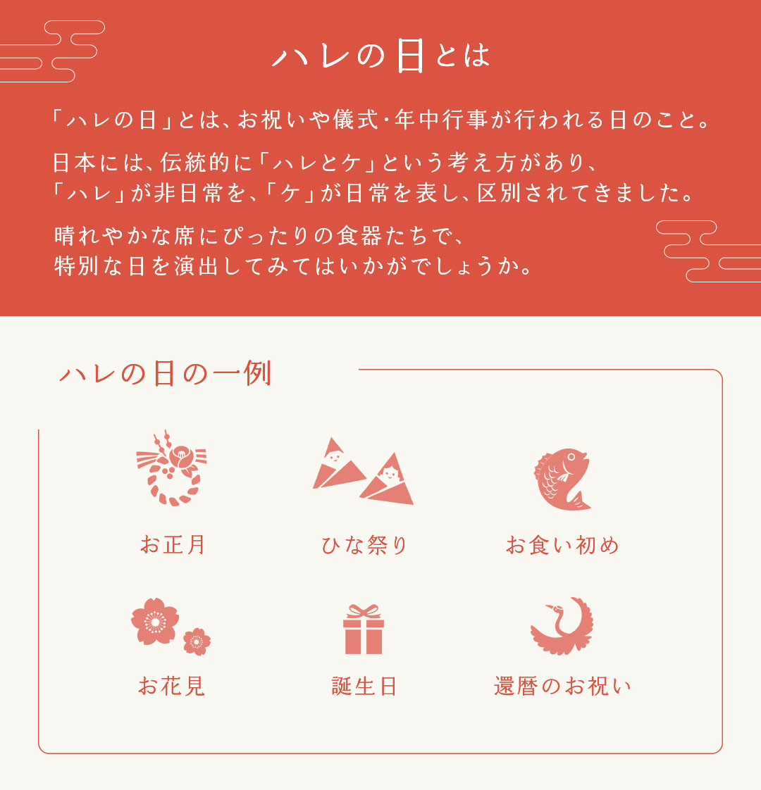 「ハレの日」とは、日本の伝統的な言葉で、日常(ケ)に対して“特別な日”を意味します。