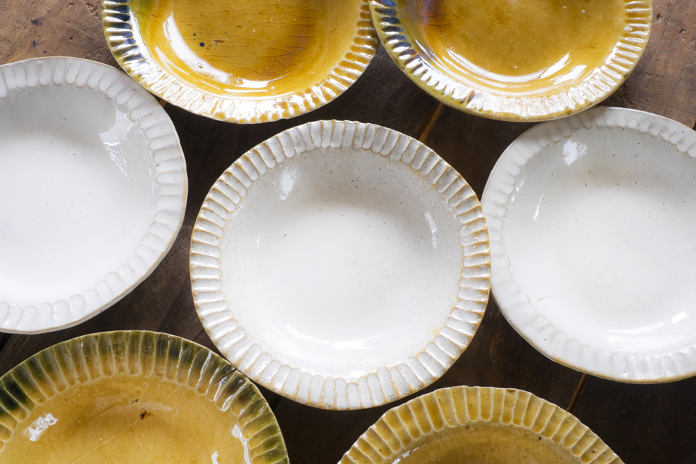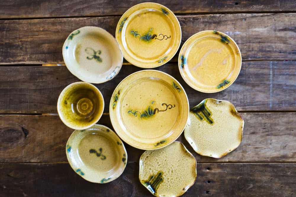 淡黄色の釉がかけられた、素朴で上品な焼き物。