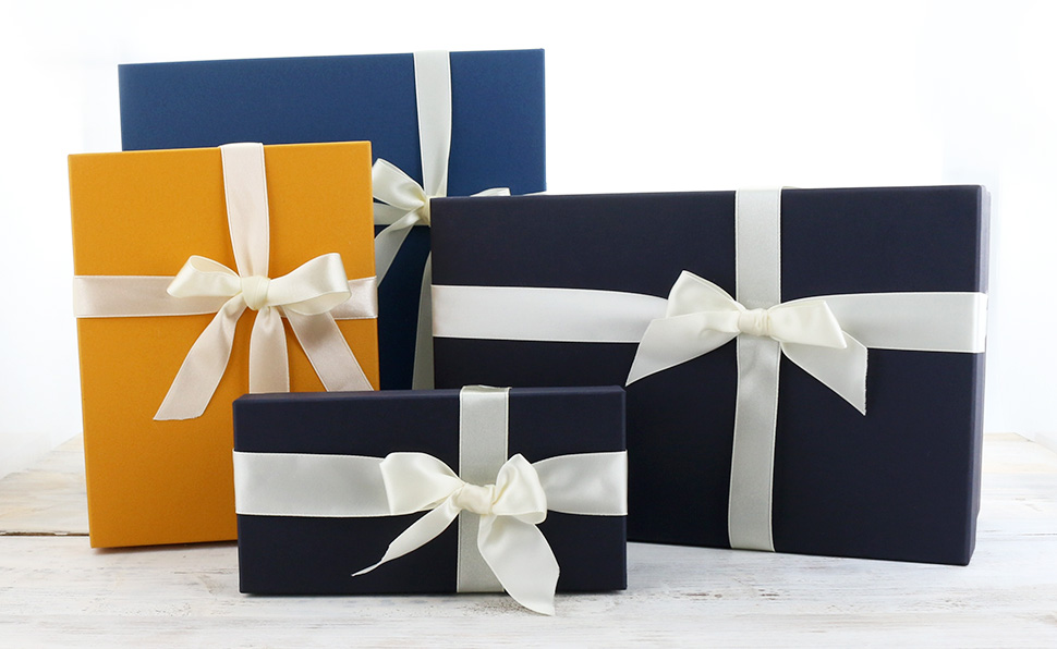 無料ラッピング・有料ラッピングをご用意いたしております。上質な化粧箱入りで、リボン掛けか熨斗(結び切り・蝶結び)をお選びいただけます。