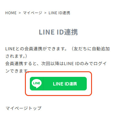 マイページから【LINE ID連携】ページへアクセス
