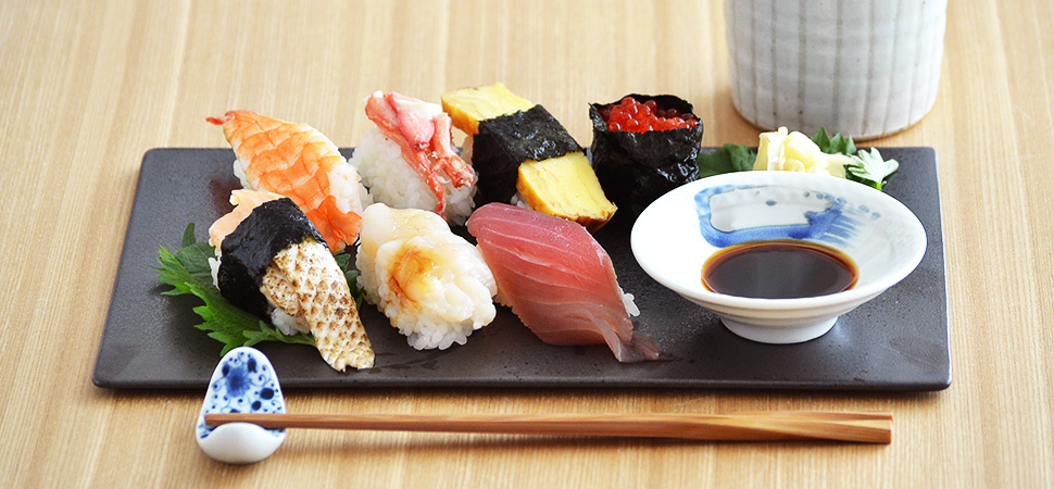 その他、角皿にはお寿司やお刺身、天ぷらなどの和食メニューがとても良く映えます。スーパーで買ってきたお料理をパックから取り出して並べるだけでも、本格的な雰囲気に。手抜きに見えないところがうれしいポイントです。同じようにお刺身を盛りつければ、立派な刺身皿に。