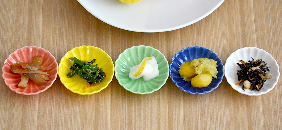 日本人は昔から器と料理の両方で季節を愉しんできました。春には桜の柄、夏には青海波、秋には雲錦、冬は雪など器に模様を描き、また器の色でも季節を現し、旬の食材を使った料理を盛り付け季節を感じる。そういった素晴らしい食文化がありました。形も単なる丸や四角だけでなく花型や木瓜型、高台や割山椒など様々。和食器は色や形、厚さ等多様ですが意外と一緒に使っても違和感がないものが多く器使いをその日の気分によって楽しむことが可能です。