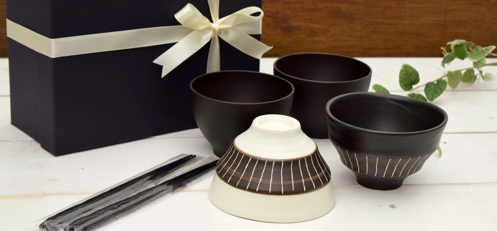 こちらはギフト対応が可能なギフトボックス入りのセット。EAST tableセレクトのオリジナル和食器セットです。