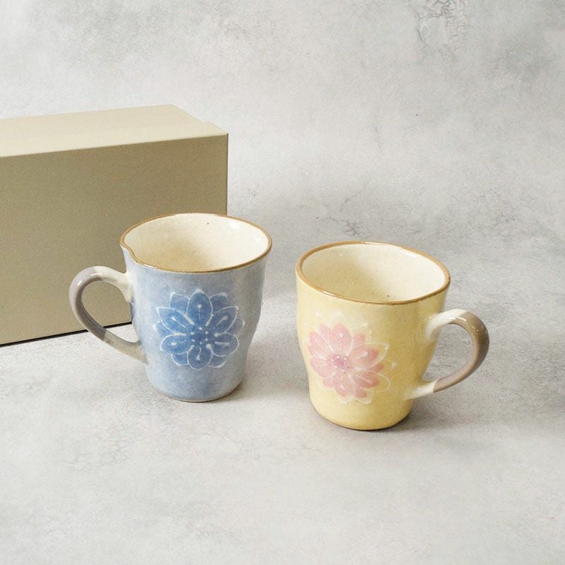 ペアマグカップ モザイク 手描き一珍 ブルー×ピンク 箱入り