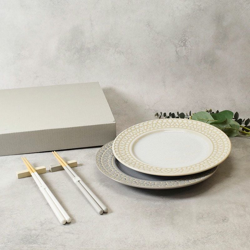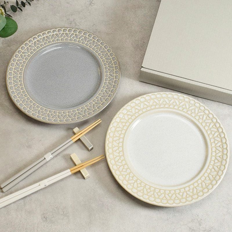他の画像を見る 【有料ラッピング対象商品】テーブルを華やかに彩るプレート・箸・箸置きのペアセット。 食器ギフト レース柄プレート・箸・箸置き2色ペアセット ホワイト×グレー 送料無料 当店特別価格 ¥ 5,200 税込 詳細を見る お気に入りに登録する