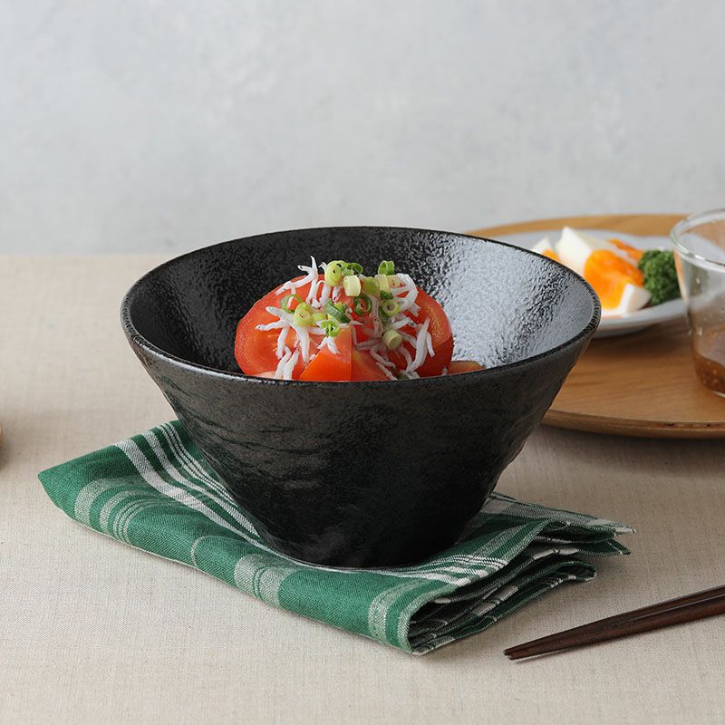 他の画像を見る 【最大50%OFFセール】スレート調のシンプルな丼 在庫限り 台形盛り鉢 24cm スレート調 ブラック 定価 ¥ 2,871 のところ 当店特別価格 ¥ 2,583 税込 販売期間 2026/03/03 20:00 〜 2026/03/11 9:59 カートに入れる お気に入りに登録する