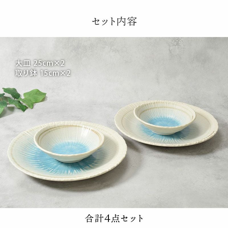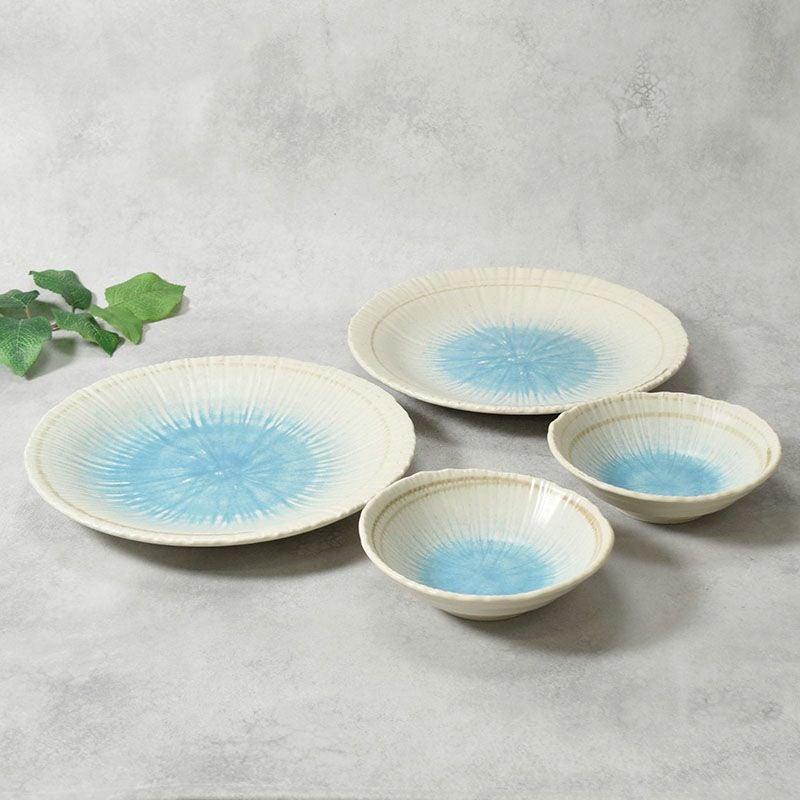 他の画像を見る 青の美しさが食卓を彩る、大皿&取り鉢の4枚セット 大皿 &取り鉢 2人用 4枚セット 2サイズ×各2枚 雫 和食器 割引セット 当店特別価格 ¥ 3,700 税込 カートに入れる お気に入りに登録する