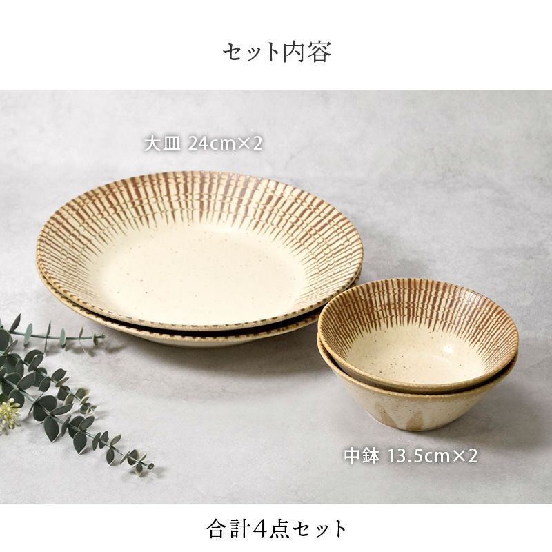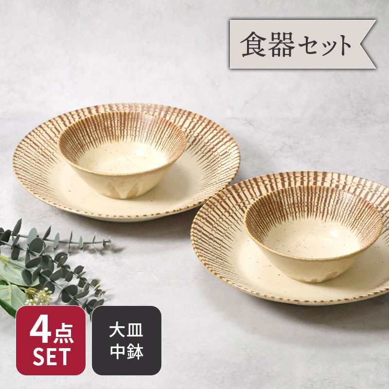 他の画像を見る 温かみのある素朴な和食器セット 大皿 & 中鉢 2人用 4枚セット 2サイズ×各2枚 チョコストライプ 和食器 割引セット 送料無料 当店特別価格 ¥ 3,600 税込 カートに入れる お気に入りに登録する
