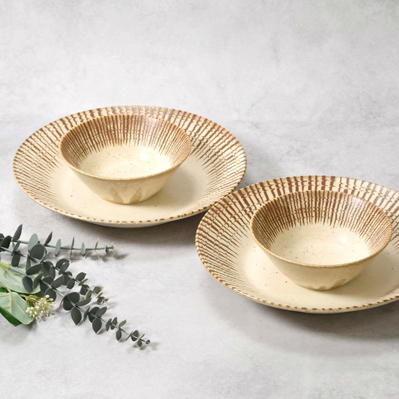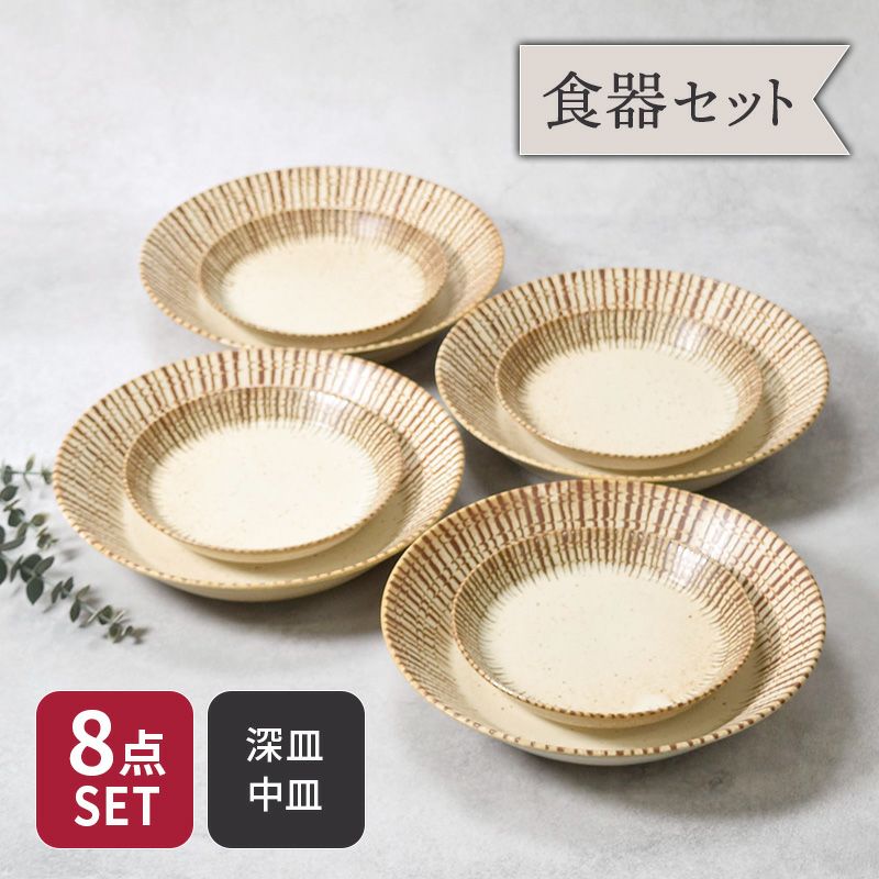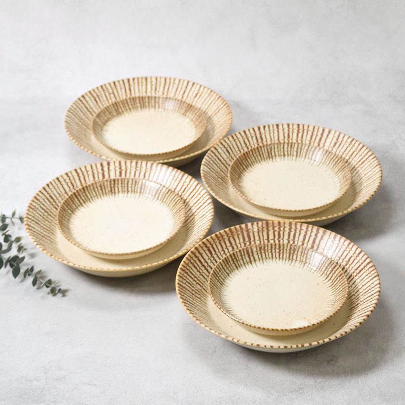 他の画像を見る 温かみのある素朴な和食器セット カレー・パスタ皿 & 中皿 4人用 8枚セット 2サイズ×各4枚 チョコストライプ 和食器 割引セット 送料無料 当店特別価格 ¥ 4,900 税込 カートに入れる お気に入りに登録する