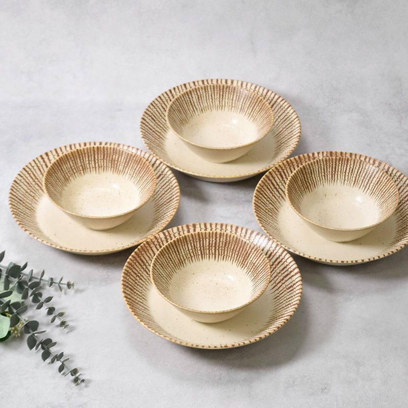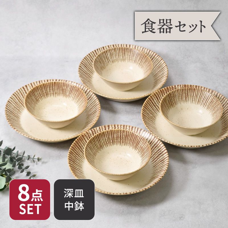 他の画像を見る 温かみのある素朴な和食器セット カレー・パスタ皿 & 中鉢 4人用 8枚セット 2サイズ×各4枚 チョコストライプ 和食器 割引セット 送料無料 当店特別価格 ¥ 5,200 税込 カートに入れる お気に入りに登録する