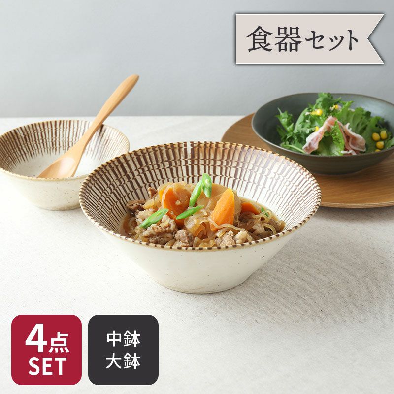 他の画像を見る 温かみのある素朴な和食器セット 中鉢 & 大鉢 2人用 ボウル 4枚セット 2サイズ×各2枚 チョコストライプ 和食器 割引セット 送料無料 当店特別価格 ¥ 3,800 税込 カートに入れる お気に入りに登録する