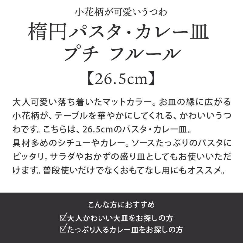 他の画像を見る 【30%値下げ】かわいい小花柄とおしゃれなカラーのカフェ食器。 在庫限り 楕円パスタ・カレー皿 26.5cm プチ フルール 定価 ¥ 1,100 のところ 当店特別価格 ¥ 770 税込 在庫切れ カートに入れる お気に入りに登録する