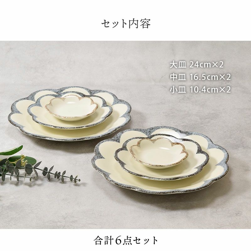 他の画像を見る 和・洋問わず使える花形のお皿6点セット。 お皿 6点セット 2人用 3サイズ×各2点 茉莉花 まつりか 花型 和食器 割引セット 送料無料 当店特別価格 ¥ 4,490 税込 在庫切れ 再入荷お知らせ お気に入りに登録する