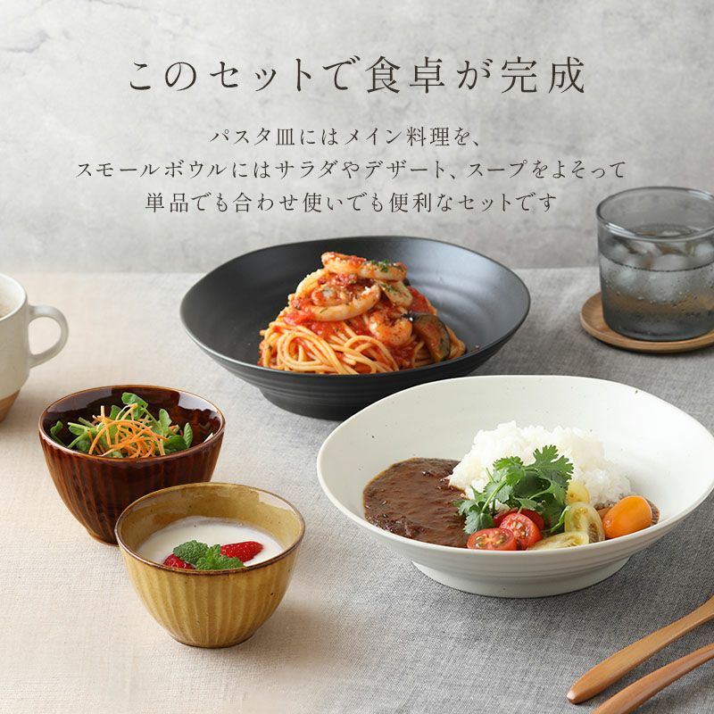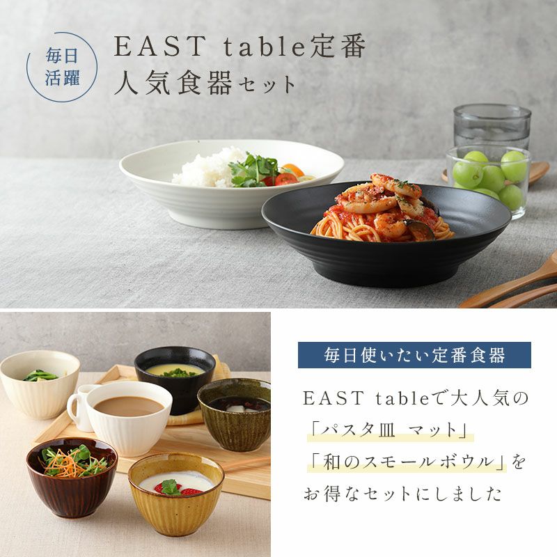 他の画像を見る EAST table定番食器のお得なセット 毎日大活躍!食器セット パスタ皿4枚&和のスモールボウル6色セット 当店特別価格 ¥ 4,100 税込 在庫切れ カートに入れる お気に入りに登録する