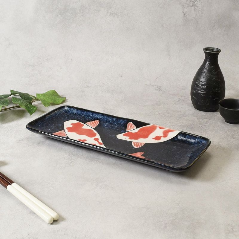 他の画像を見る 和の絵柄が食卓に静かな華やぎを。 長角皿 29.5cm 寿司プレート 錦鯉 Nishiki Goi sushi plate 当店特別価格 ¥ 1,760 税込 在庫切れ 再入荷お知らせ お気に入りに登録する