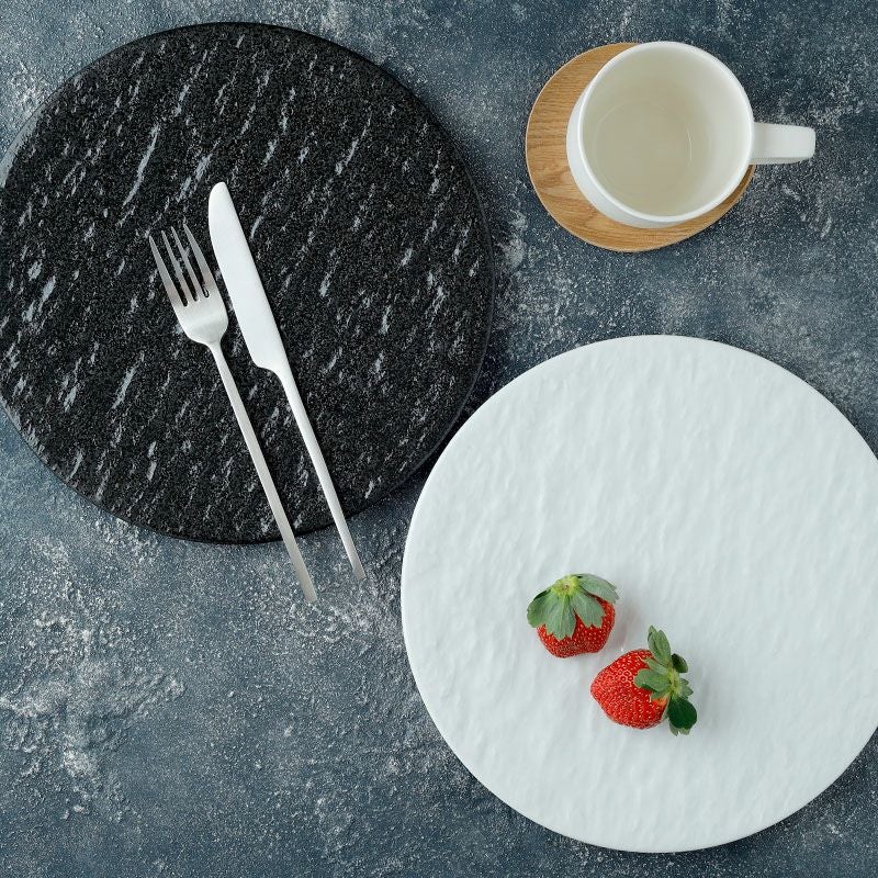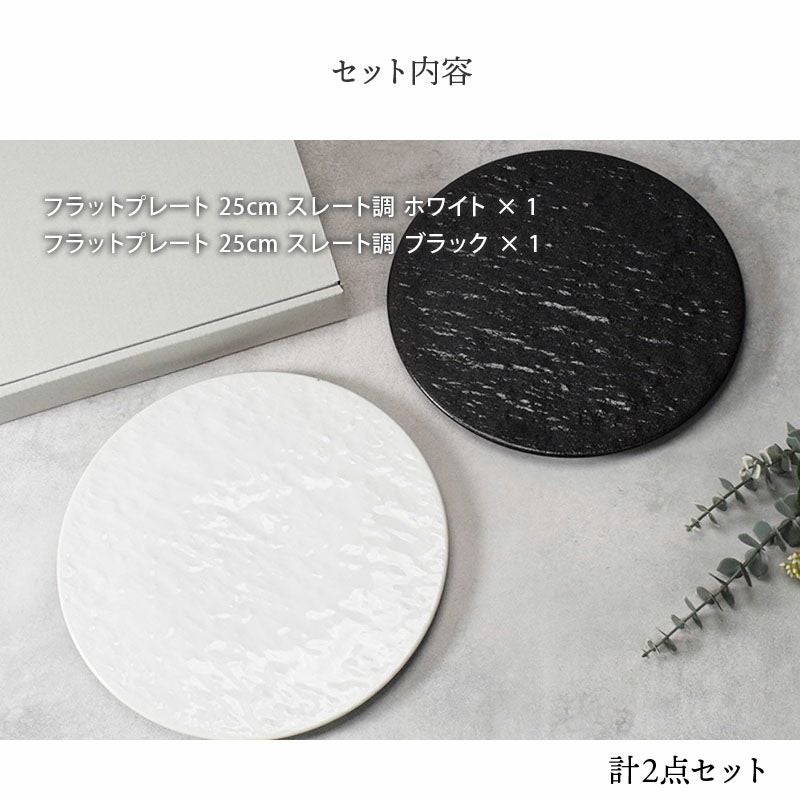 他の画像を見る 【有料ラッピング対象商品】和食にもぴったり。シンプル・モダンなお皿 食器ギフト 送料無料 フラットプレート25cmペアセット スレート調 ホワイト×ブラック 当店特別価格 ¥ 4,800 税込 詳細を見る お気に入りに登録する