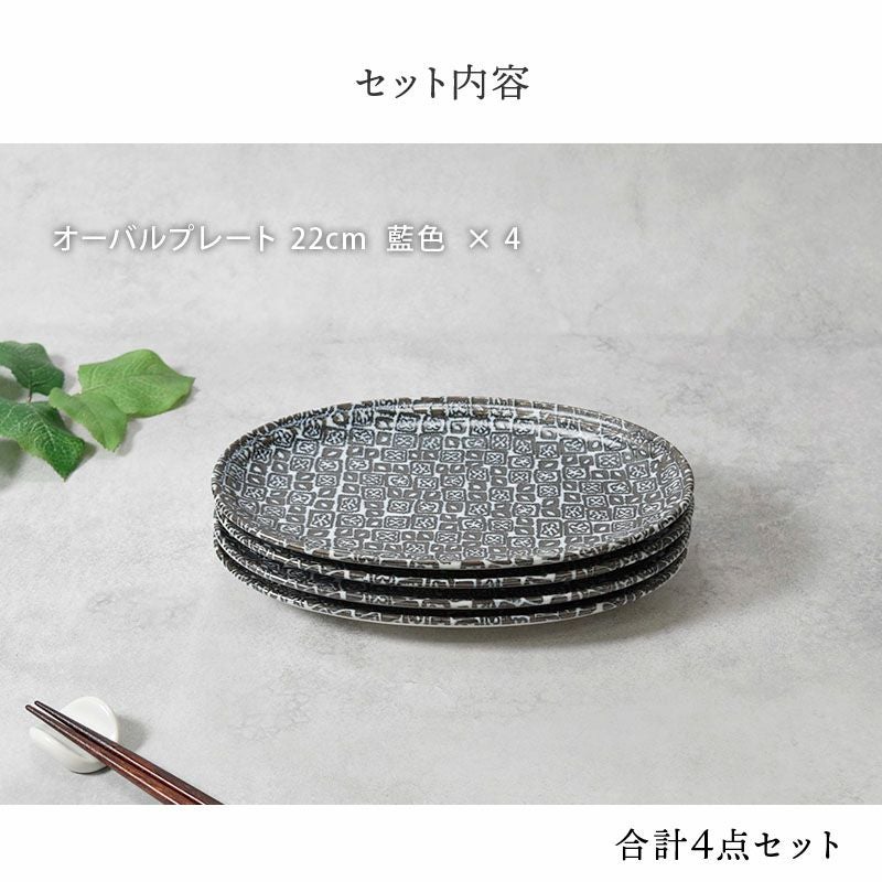 他の画像を見る 和の趣を感じる、落ち着きのあるオーバルプレートセット オーバルプレート 22cm 4枚セット シーズ seeds 藍色 割引セット 送料無料 当店特別価格 ¥ 4,800 税込 カートに入れる お気に入りに登録する
